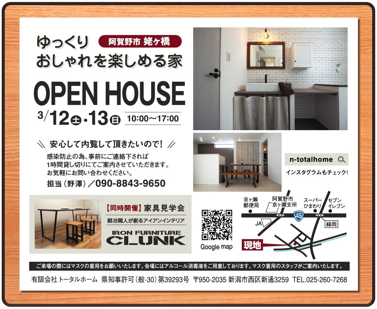見学会開催日:9:00~16:00 090-8843-9650 担当:野澤