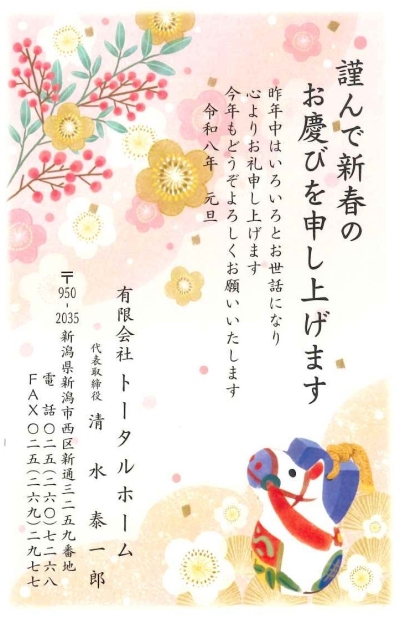 2026年01月08日(木) 【令和8年-2026-】新年のご挨拶 新年あけましておめでとうございます。 本日より通常通り営業しております。 建物に関することなら、何でもお気軽にご相談ください。 本年もよろしくお願いいたします。